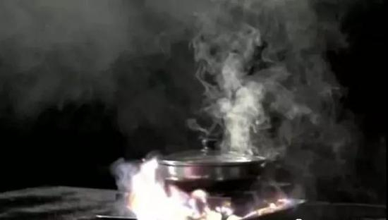 随后,电磁炉突然起火并发生爆炸。