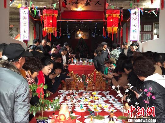 中新网金华3月6日电(记者 奚金燕 通讯员 潘斐斐)农历正月十九是浙江省浦江县杭坪村一年中最热闹的日子。这一天,杭坪镇村民聚集到一起,共同参加传承已久的浙江省级非遗项目“杭坪摆祭”活动,以祈佑新的一年五谷丰登、六畜兴旺、风调雨顺、百姓平安。现场栩栩如生的米塑、隆重壮观的请神仪式也让八方来客大开眼界。