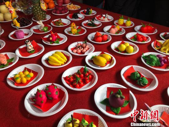 现场精美的米塑引起围观 潘斐斐 摄