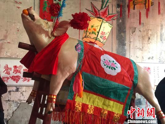 其中最吸引人的莫过于一件件精美的米塑了,形态各异,有花鸟虫鱼,也有走兽飞禽,惟妙惟肖,栩栩如生。正厅两边分别摆放了打扮漂亮的架猪和架羊,在正月二十日早上下架后将分售给农户,据说吃了架猪架羊的肉有吉祥的寓意。