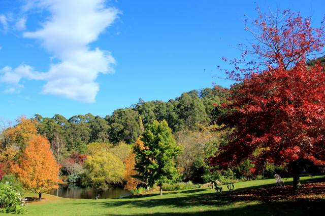 马其顿山,因为盛产枫叶被大家称为枫叶谷,沿途很多私家花园,成片的枫树,层林尽染,非常漂亮。每年4月到5月初,墨尔本西北的枫叶谷小镇迎来一年中的金黄时期,手持相机的摄影爱好者们一定会被壮观的红叶美景震撼。