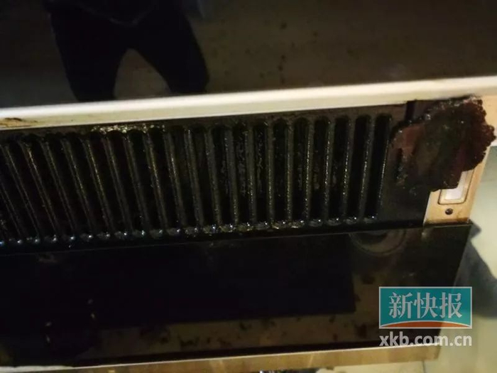 ▲家政阿姨说,当时爆裂的就是这个部件,事后方太维修人员上门更换了一块。新快报记者 朱烁然/摄