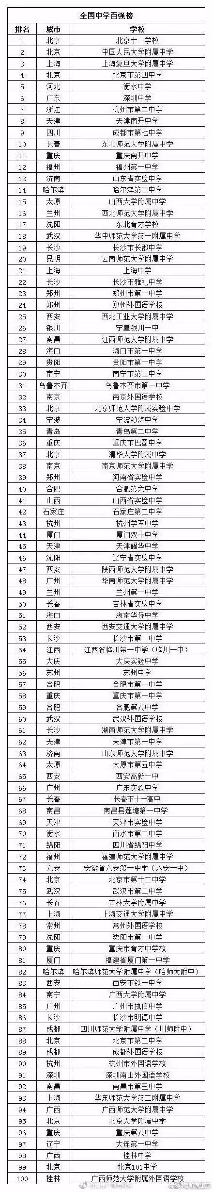 据了解,榜单是由一个名为“校长会”的微信公众号公布,他们表示,“中国百强中小学”榜单是由拥有全国近20万精英校长群体的校长会评选出的。