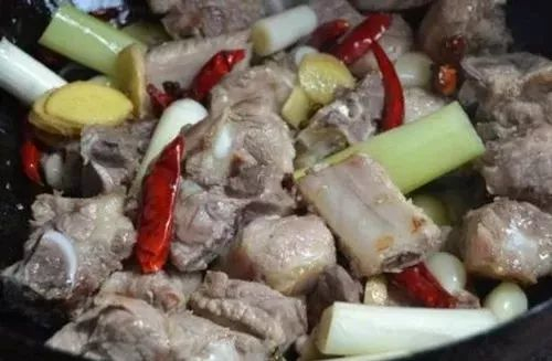 第二个菜是小炒排骨,他妈妈没有放生抽也没有放老抽,肉看起来有点白白的,看着不是很有食欲,但吃起来比较入味,有肉的焦香!