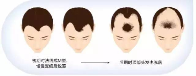 遗传性脱发大部分呈M型脱落,即从头两侧开始,还有一部分呈O型从头顶开始脱落,此外,由于雄性激素分泌旺盛,头发常常很油,很多人也经常会表现为脸部很油。