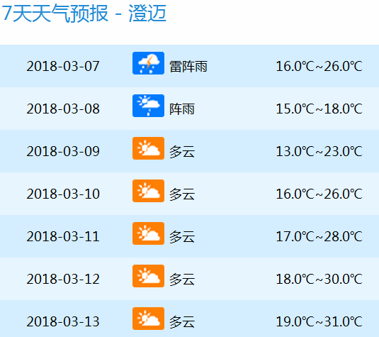 降雨方面:7日夜间~8日,全岛阴天,大部分地区有小雨,其中西部和北部沿海地区可能伴有雷暴大风、短时强降水等强对流天气;9日~11日,全岛阴天间多云。