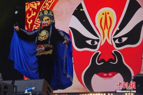 资料图:当地时间2月18日,作为特拉法加广场中国春节庆典的“压轴大戏”,“四海同春”欧洲团亮相此间,拉开了戊戌狗年欧洲巡演的序幕。图为吴松涛表演川剧《变脸》。 中新社记者 冉文娟 摄
