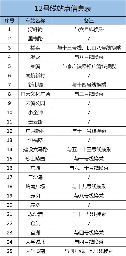 浔峰岗站:为十二号线由北向南第一座车站,位于浔峰山东路、万科路与金沙洲路的交叉路口附近。