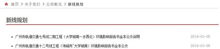 3月5日,广州地铁官方网站挂出了地铁7号线二期、12号线的环评公示。