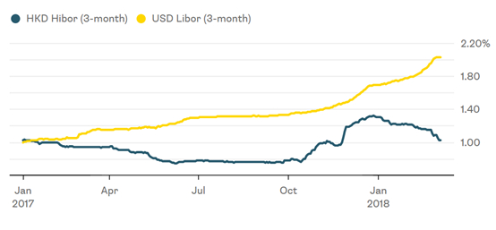 另一方面,由于香港银行体系的资金流动性十分充裕,利率水平很低。