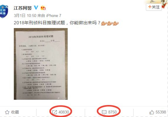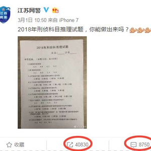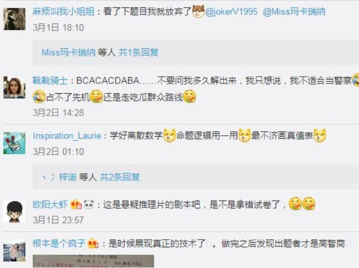 正当所有人,都在感叹难度逆天时,@江苏网警 解释说,这题不是真正的刑侦试题,出题人是杭州学军中学毕业生杨宇晨。