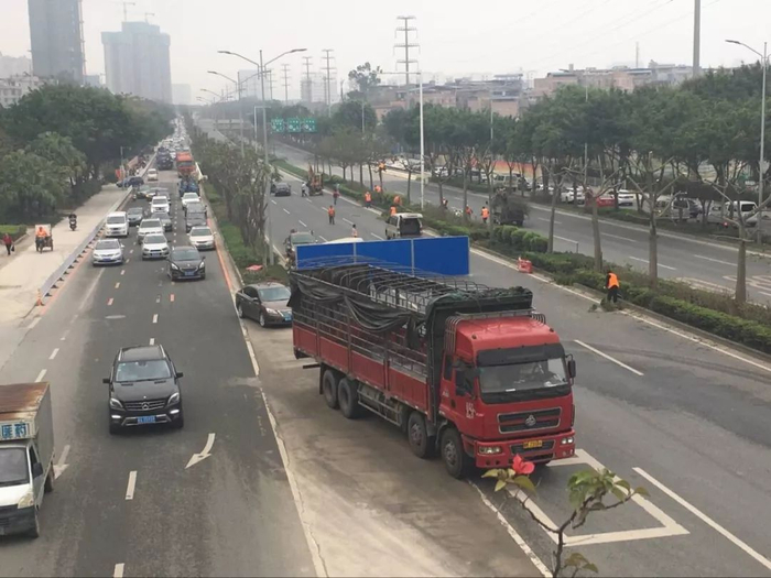 现场执勤民警建议车主们, “北湖方向过来的车辆走邕武立交桥底,右转进入邕武路走南梧路方向;邕宾立交过来的车辆走辅道,服从交警指挥;没有取得区域通行证的货车走绕城高速。”