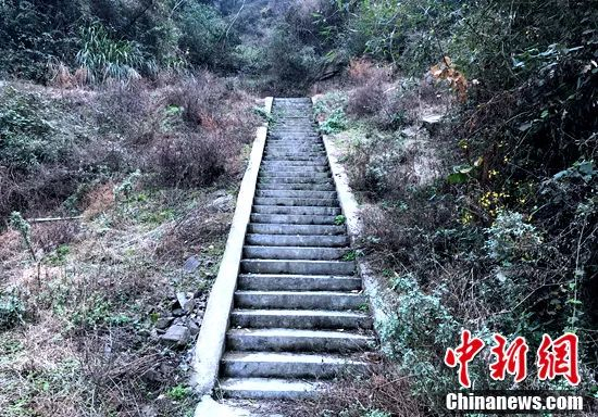 离杨帆家数百米的地方有一个水库,从路边到水库有一段44阶的矮台阶,这就是杨帆每天早上锻炼的地方。
