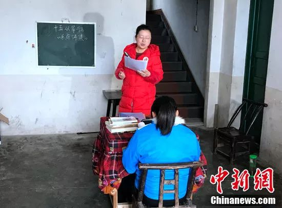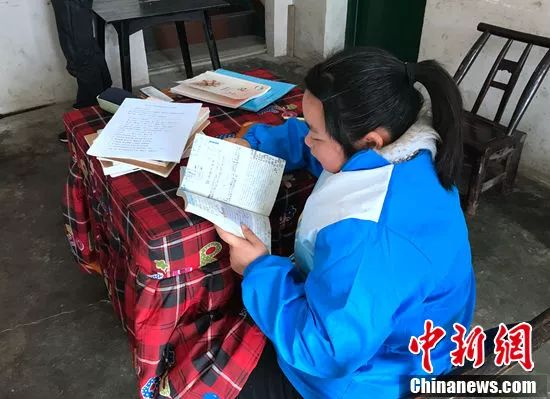 小新几天前见到杨帆时,她穿着一件蓝白色的运动服,在堂屋里的一张桌子上看着书。堂屋的一面墙上挂着一块小黑板,旁边的角落里堆放着她的课本和课外书。