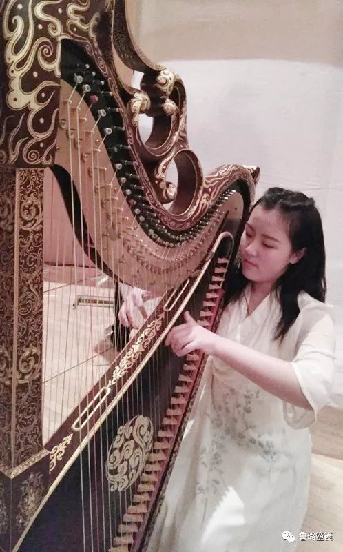 每次演出,箜篌的形色与韵律总会惊艳到观众。经常有人问这是什么乐器,是竖琴吗?她每次都会自豪地回答:“不是,它是中国的古老民族乐器——箜篌。”