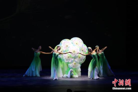 当地时间2月28日晚,由中国国务院侨办主办的2018年“文化中国·四海同春”晚会在美国佛罗里达州奥兰多举行。这是该慰侨演出首次登上奥兰多的舞台。图为中国东方演艺集团(原东方歌舞团)的演员们表演舞蹈《茉莉花开》。中新社记者 曾静宁 摄