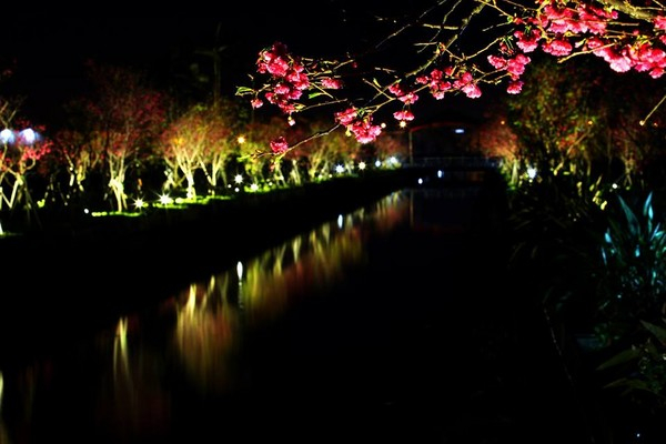 宜兰罗庄樱花步道夜间点灯。(图片来源:台湾东森新闻云)