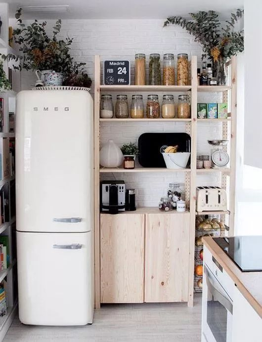 建议: 在冰箱顶部或周围不要摆放微波炉、电饭锅等带电磁感应的电器,可以选择摆放绿萝、吊兰等盆栽,这样既利用了空间,又能吸收厨房油烟,美化厨房。