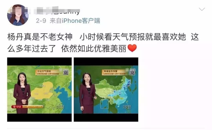 3月8日是“三八妇女节”,又被网友叫做“女神节”,大家都在表白心目中的女神。@新闻联播天气预报发微博“表白”了从1996年起至今,主持该栏目长达23年的主播杨丹。