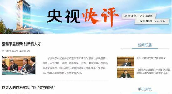 “央视快评”牢牢把握新闻报道“时度效”传播规律,以“真、短、快、活、强”为文风,坚持移动端优先发稿策略,央视网和“央视新闻”新媒体第一时间推送,并在首页首屏首条置顶推荐。