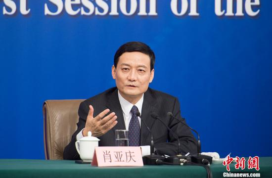 十三届全国人大一次会议新闻中心于3月10日15时举行记者会,国务院国资委主任肖亚庆,副秘书长、新闻发言人彭华岗就“国有企业改革发展”相关问题回答记者提问。图为国务院国资委主任肖亚庆。 中新社记者 李卿 摄