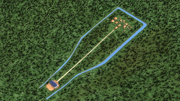 什么是墓园兆沟?通俗说,就是环绕在墓园周围的围沟,有了它的存在才能确定墓园的边界、形状、面积。所以兆沟既为墓园界沟,同时承担隔离、护卫、排水等功能。现存兆沟北端平直规整、南部东、西两沟斜向内收成瓶嘴状入口,圈成北阔南窄形似倒置酒瓶状的空间(图五),包含面积约一百五十亩,兆沟最深处是1.7米,原宽度为5—8米。原来兆沟内还贮满清水,这些水来自墓园西侧的河流中。这样以来,吕氏墓园整体使形成远有群山抱揽,近有水流环绕,所谓“山环水复”的上佳地望条件。