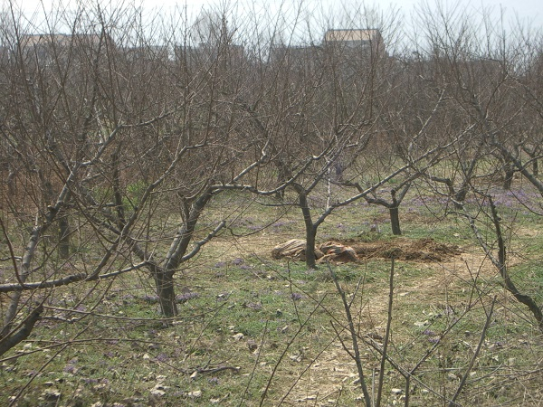 记得那是2006年11月的一个忙碌的下午,我边整理案上的东西顺便看一眼墙上的挂钟,“啊,已经5点了,时间过的真快。”这时桌上的电话忽然响起,听筒那端传来了焦南峰院长坚定的声音:“张蕴,代上刘思哲马上跟我去工地,详情车上再说。” 就这样,我第一次来到了蓝田县五里头村村北的这片黄土地上,第一次看到了那片桃树林,也第一次看到那那深不见底的盗洞(图三)。