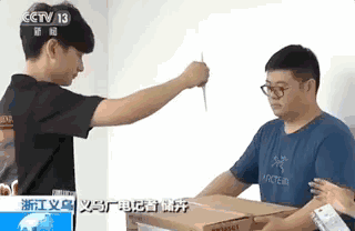 将荆轲“死亡之刃”对准一个纸箱后松手,结果直接插在了纸箱上。拔出来之后,纸箱上留下一个洞。
