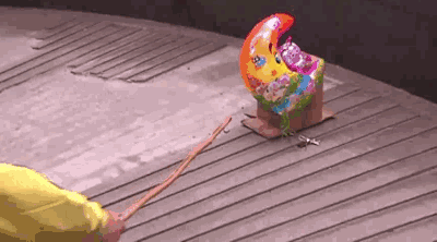 将纸箱换成西瓜后,西瓜汁都流出来了。