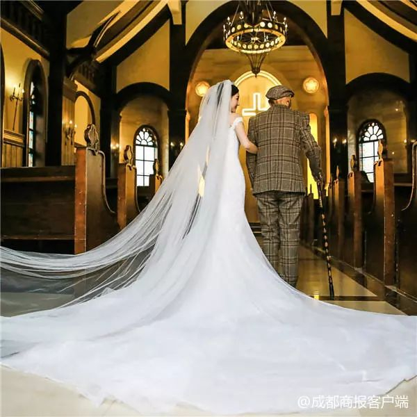 当《婚礼进行曲》响起的时候,身穿洁白婚纱的符雪薇走在红毯上,挽着爷爷的手,似乎觉得,这真的就是爷爷在陪着自己走进婚姻殿堂。和爷爷完成婚纱照的拍摄,符雪薇说,终于把这件最重要的事情做完了。