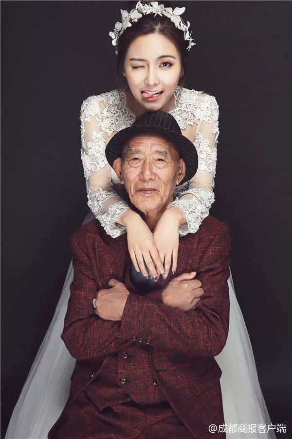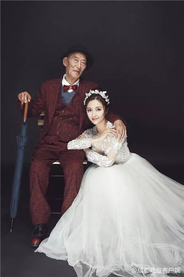 原来,这是25岁的符雪薇和87岁的爷爷符其全一起拍摄的婚纱照。