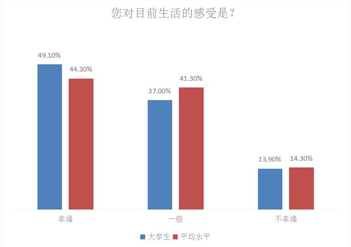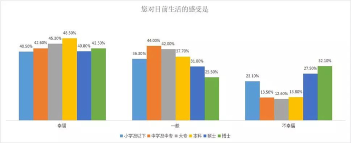 大调查发现,大学学生群体和刚刚步入社会的95后,感到幸福的人比例最高;从学历看,具有大学本科学历的幸福感相对最高。