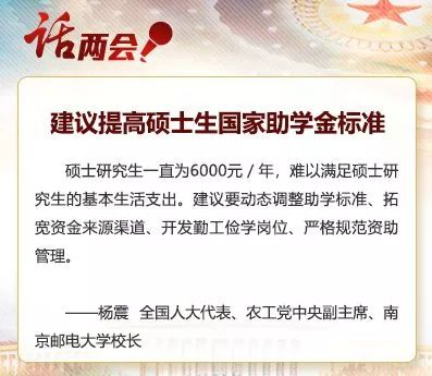 今年全国两会期间,全国人大代表、农工党中央副主席、南京邮电大学校长杨震向大会提交了《建议适当提高硕士研究生国家助学金标准》(以下简称“《建议》”)。