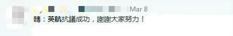 消息传来,绿媒欢呼,“独派”网民则兴奋留言:“抗议英航成功,谢谢大家努力!”、“恭喜,祝台湾接下来的‘正名行动’继续成功!”