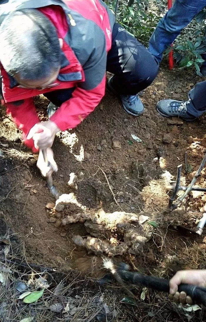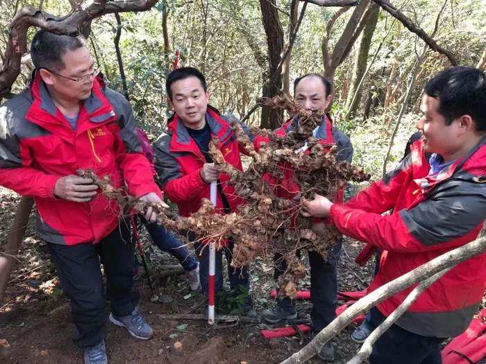 3月10日中午,第四次全国中药资源普查队的宁乡普查队员,在凤凰山国家森林公园内,挖出了一根举世罕见的巨型野生菝葜,到底有多大呢?