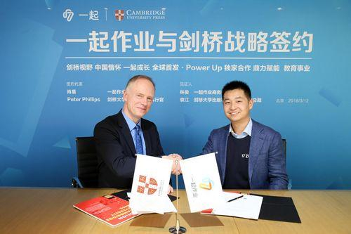 中新网3月14日电 近日,剑桥大学出版社与一起作业在北京签署战略合作协议。一起作业联合创始人肖盾、剑桥大学出版社首席执行官Peter Phillips作为签约代表出席了会议,并共同宣布将一起推出与剑桥英语考试适配的教材《POWER UP》,通过一起作业平台面向K12阶段学生独家全球首发,并继续加强国内外优质教学资源互通,以及学习理论研究与应用等方面的合作,共同成长、鼎力赋能国际教育。借此,一起作业将全面发力引导国内K12英语教学走向国际化。