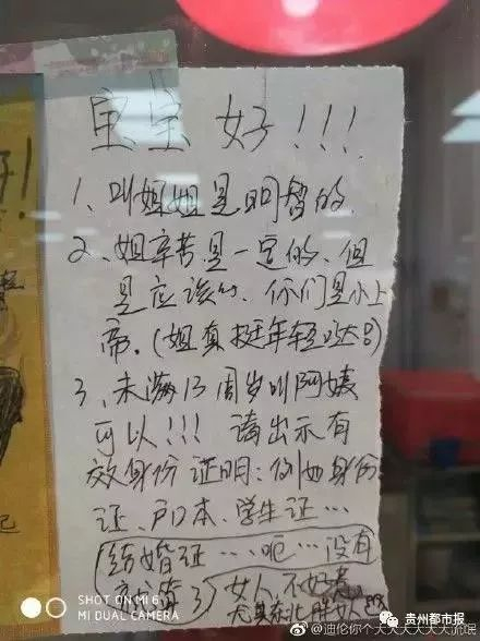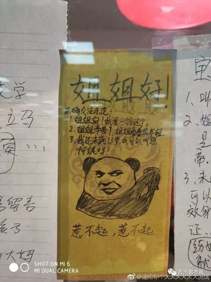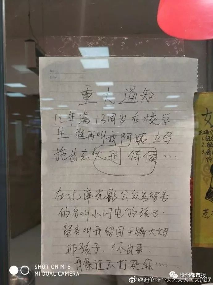因为小姐姐在窗口门前,贴着几张霸气的告示,上面写明:凡年满13周岁在校学生,谁再叫我阿姨,立马拖出去大刑侍候。