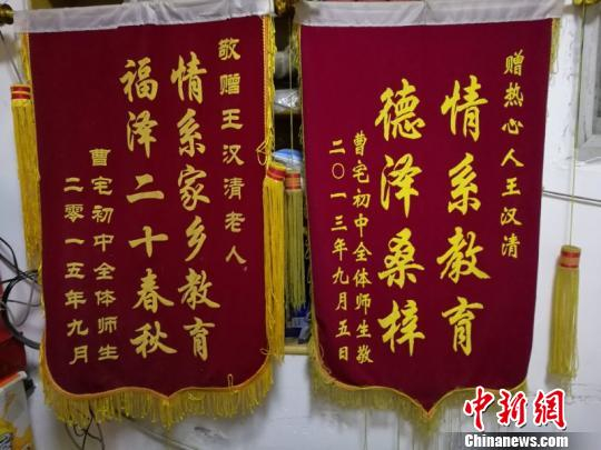 曹宅初中全体师生赠与王汉清的锦旗 受访者提供