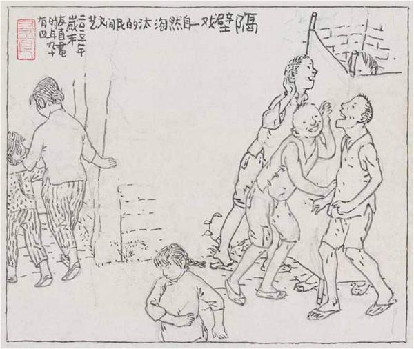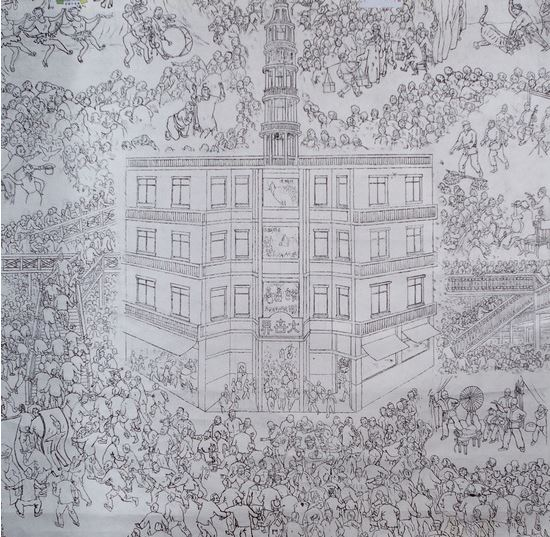 贺友直根据儿时记忆创作的《上海大世界》草图。