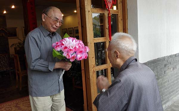 贺友直与老战友毛均荣见面