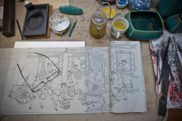 贺友直的画案 澎湃资料