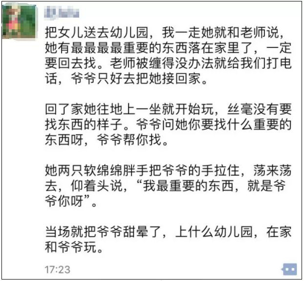 宝宝:(超大声地说)老师老师,今天我送爸爸上幼儿园,你一定要教他扎辫子,不然以后我妈妈不在家就没有美美的辫子到幼儿园了!