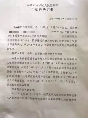 2017年10月18日,五华公安分局对此案侦查终结,以银先生涉嫌过失致人死亡罪,向五华区检察院移送审查起诉。