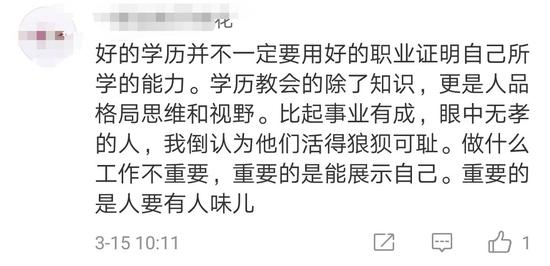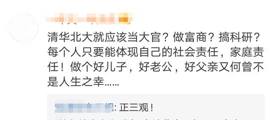 还有网友表示,“每个人只要能体现自己的社会责任、家庭责任,做个好儿子、好老公、好父亲,又何曾不是人生之幸?”