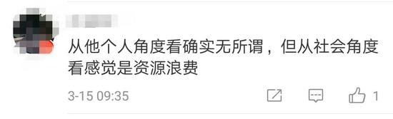 某网友认为:“从他个人就角度看确实无所谓,但从社会角度看感觉是资源浪费。”