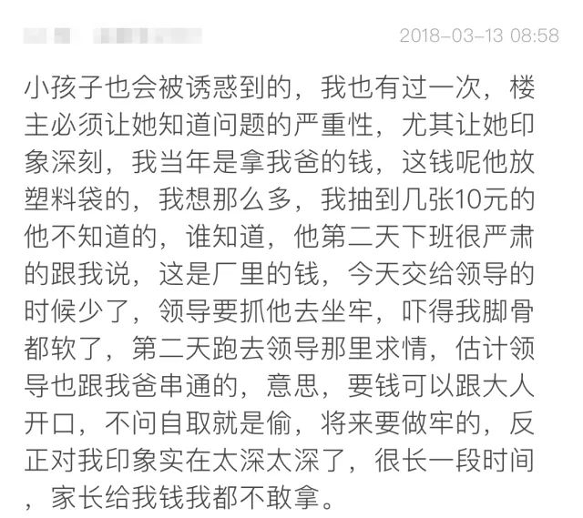 除此之外还应该多了解女儿“私拿”家里钱的需求