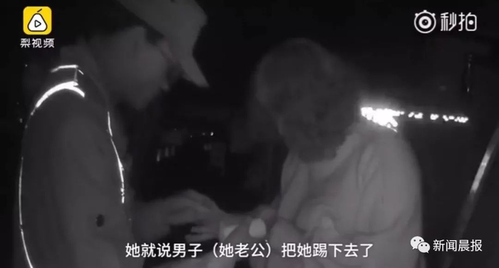 她就说男子(她老公)把她踢下去了。