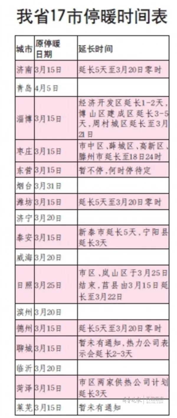 据齐鲁晚报消息,14日,山东省气象台继续发布寒潮黄色预警信号:受强冷空气影响,15到17日山东省将出现寒潮天气,伴随有剧烈的大风降温,大部地区最低气温降温幅度10℃~12℃。受此影响,省内多地发布通知,延长供暖时间,真正实现了“看天供暖”。还有一些城市停暖时间未到,是否延长还要看天气情况。