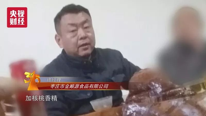 山东枣庄市金顺源食品有限公司 徐经理:“主要提的味还是在香精上面,加核桃香精,还要加香精,临打料的时候加。”