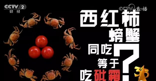央视辟谣食物相克!——西红柿和螃蟹同吃等于砒霜?假的!所含无机砷含量远远低于国家标准,且原本就在螃蟹里,加入西红柿根本就没有增加。